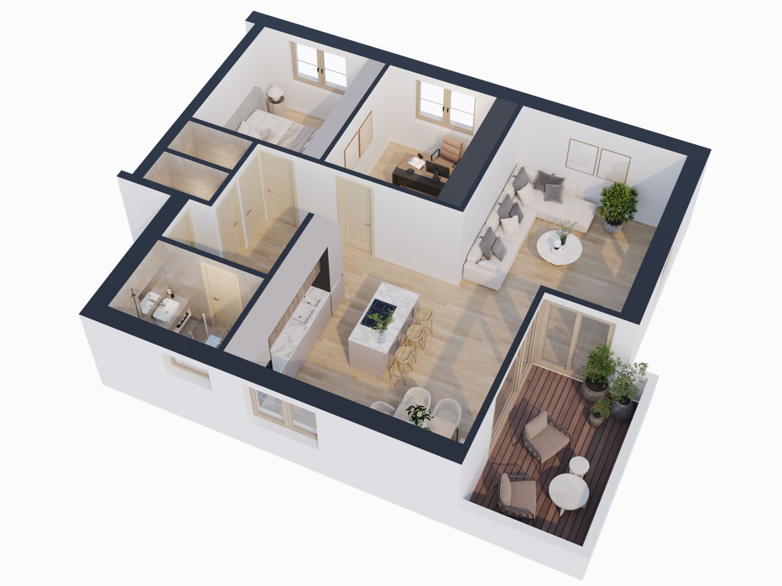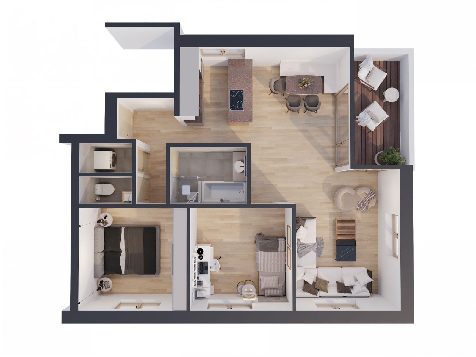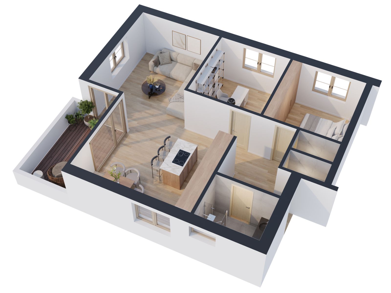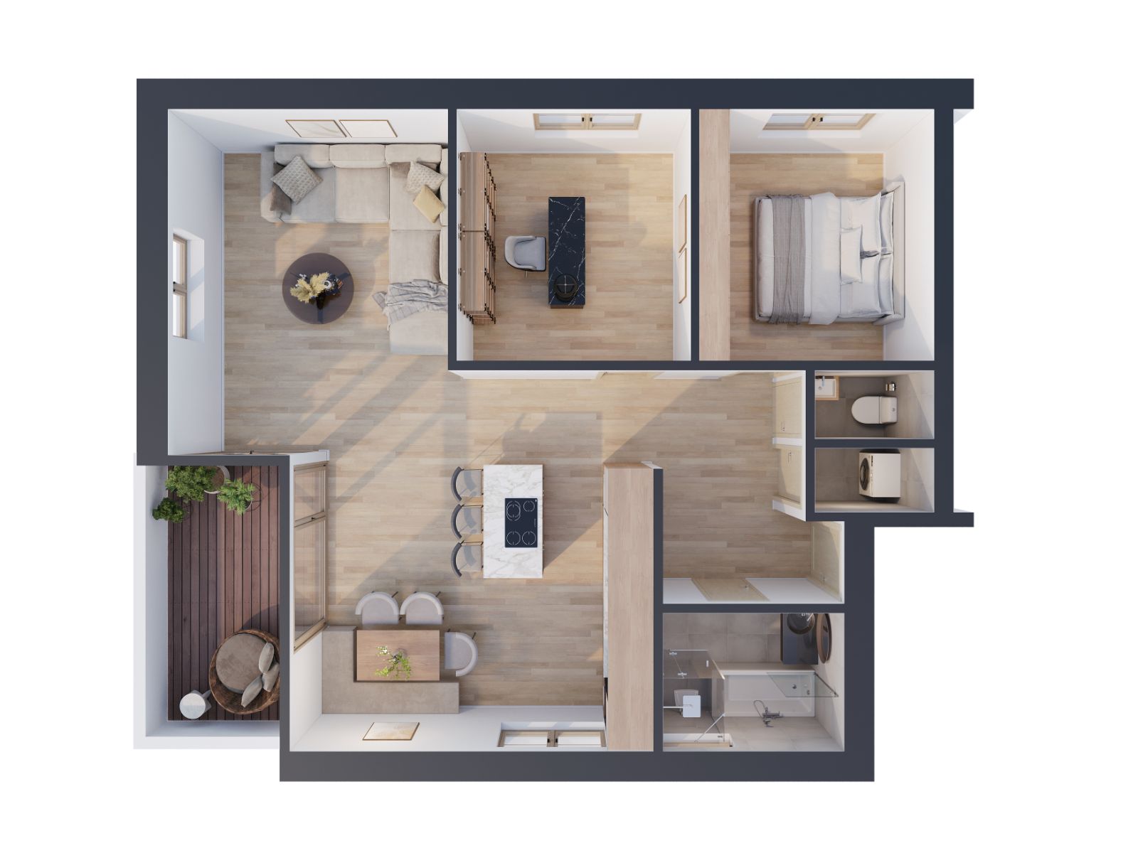 Die 3,5 Zimmerwohnungen überzeugen durch ihre hochwertige und individuelle Ausstattung. Hier treffen moderner Komfort und ein entspanntes Wohnambiente aufeinander.