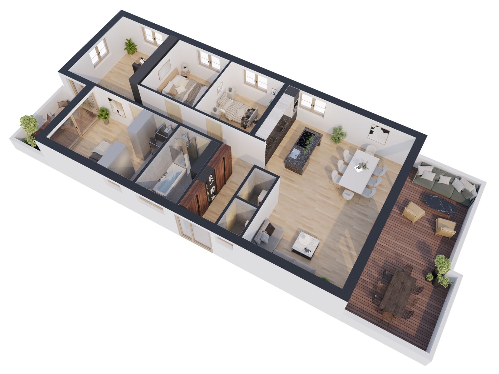 Die 6 Zimmerwohnungen überzeugen durch ihre hochwertige und individuelle Ausstattung. Hier treffen moderner Komfort und ein entspanntes Wohnambiente aufeinander. Das Penthouse bietet ein außergewöhnliches Wohngefühl über den Dächern – mit maximaler Gestaltungsfreiheit, großzügigen Freiflächen und exklusiven Zusatzoptionen, die in dieser Form einzigartig sind. Hier entsteht ein Zuhause, das sich vollkommen nach Ihren persönlichen Vorstellungen richtet.