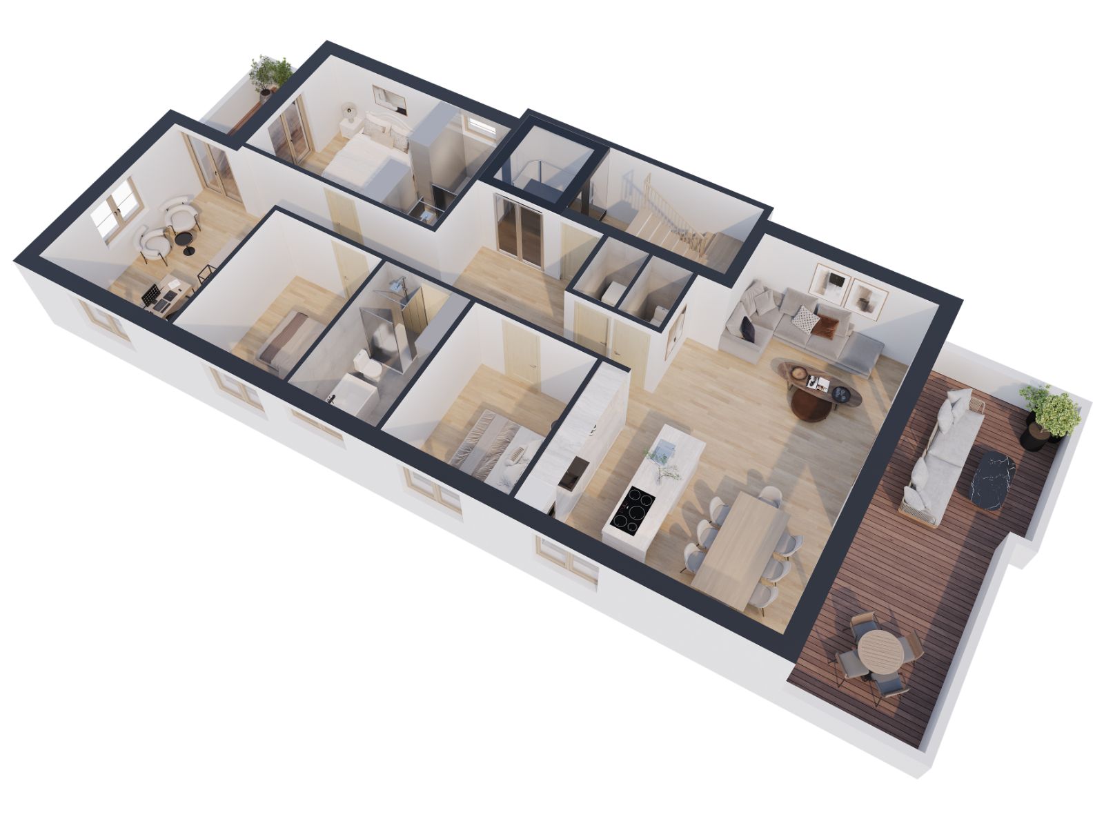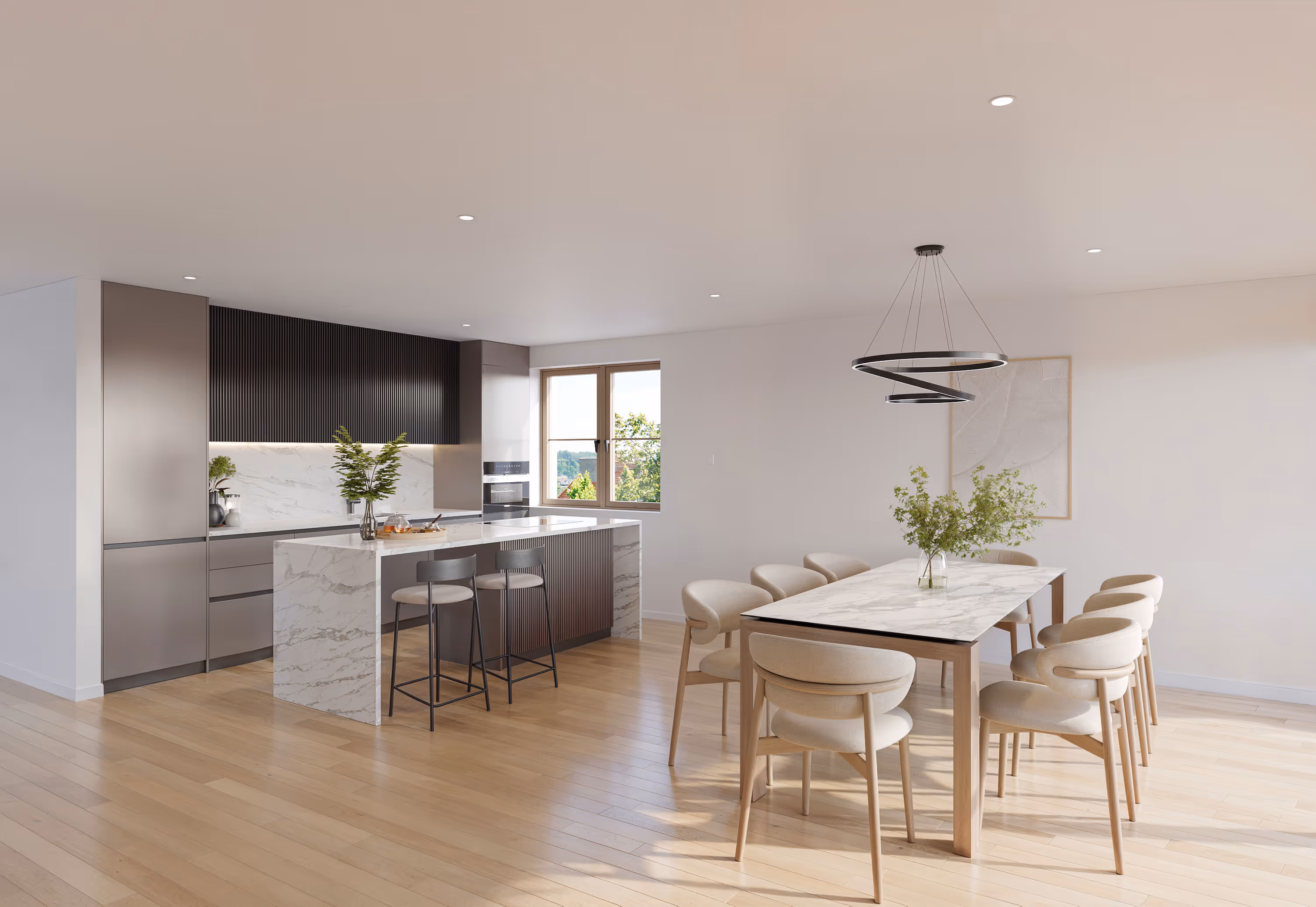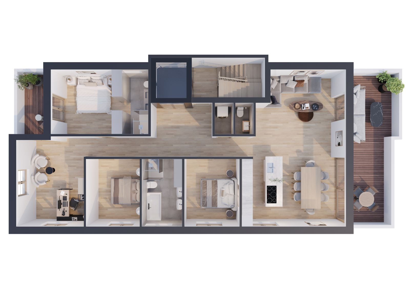 Die 6 Zimmerwohnungen überzeugen durch ihre hochwertige und individuelle Ausstattung. Hier treffen moderner Komfort und ein entspanntes Wohnambiente aufeinander. Das Penthouse bietet ein außergewöhnliches Wohngefühl über den Dächern – mit maximaler Gestaltungsfreiheit, großzügigen Freiflächen und exklusiven Zusatzoptionen, die in dieser Form einzigartig sind. Hier entsteht ein Zuhause, das sich vollkommen nach Ihren persönlichen Vorstellungen richtet.