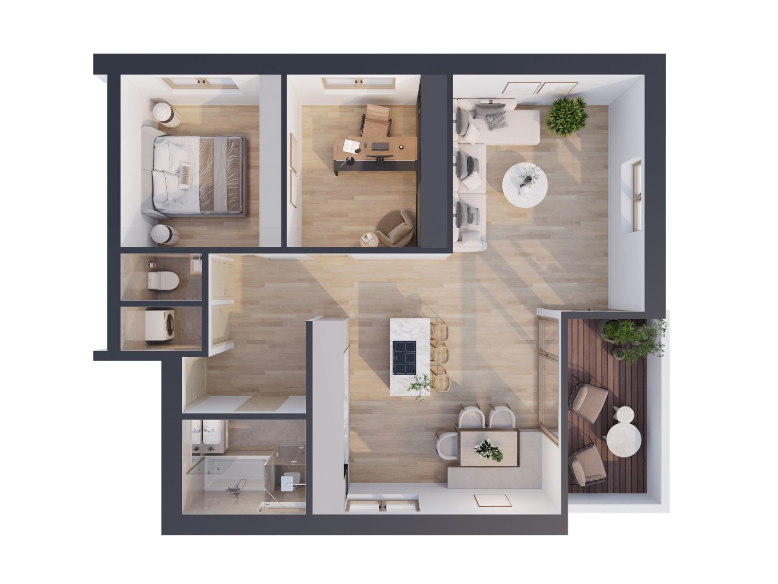 Die 3,5 Zimmerwohnungen überzeugen durch ihre hochwertige und individuelle Ausstattung. Hier treffen moderner Komfort und ein entspanntes Wohnambiente aufeinander.